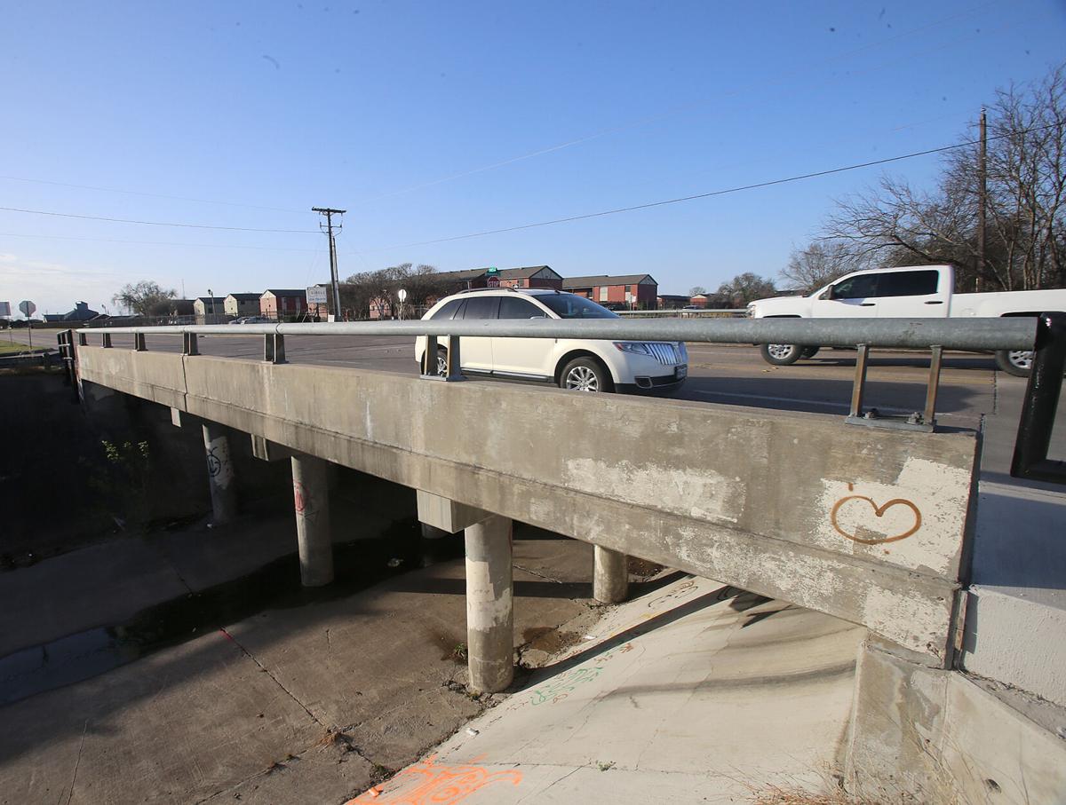 Vehicles cross the 18th Street bridge over Primrose Creek, which is on the city's short list for repair or replacement, along with a couple more crossing Primrose Creek.