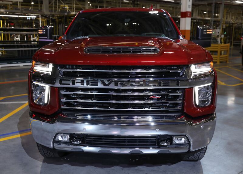 A 2020 Silverado HD pickup truck at the GM assembly plant in Flint, Michigan, in 2020. Owners of vehicles like this that weigh more than 6,000 pounds will face additional fees in Washington, D.C.