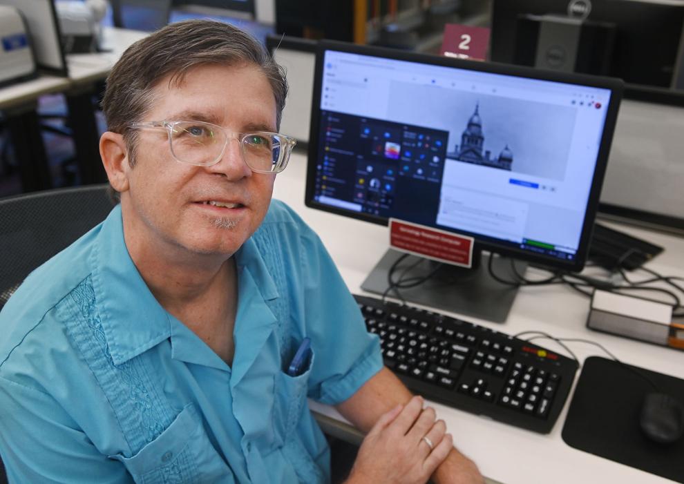 Special collections librarian Chuck Voellinger was honored by the Texas Library Association for his “History Moments” video series. He’s shown Wednesday at Emily Fowler Central Library.