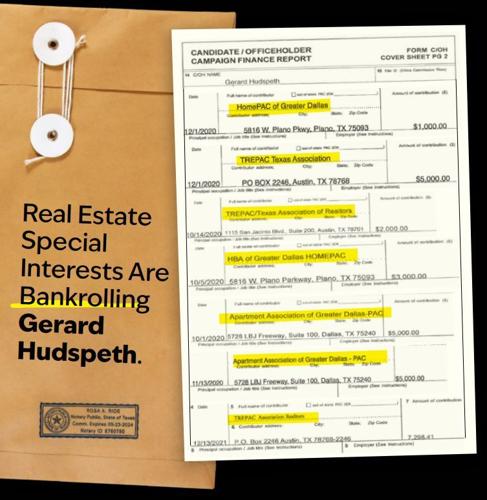 The mailer was paid for by Denton mayoral candidate Paul Meltzer’s campaign and includes campaign finance records for incumbent Mayor Gerard Hudspeth, the other candidate in the two-person race. Meltzer, the current mayor pro tem, provided a copy of the mailer when he was reached Thursday.