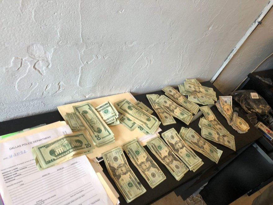 Dallas police said they executed a search warrant at a location on the 3600 block of Sunnyvale Street on April 20 where they found additional fake paper tags along with $3,000 in cash.