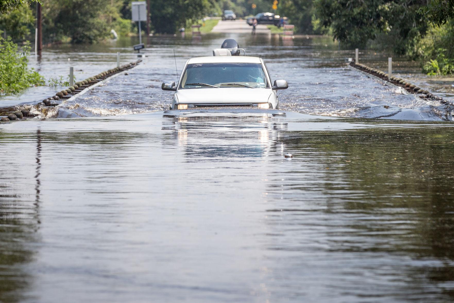 A truck attempts to cross a bridge Sept. 2, 2017 on FM 522 in Wild Peach. Five years after Hurricane Harvey, Brazoria County communities expect to receive millions in federal funding to better protect against potential floods.