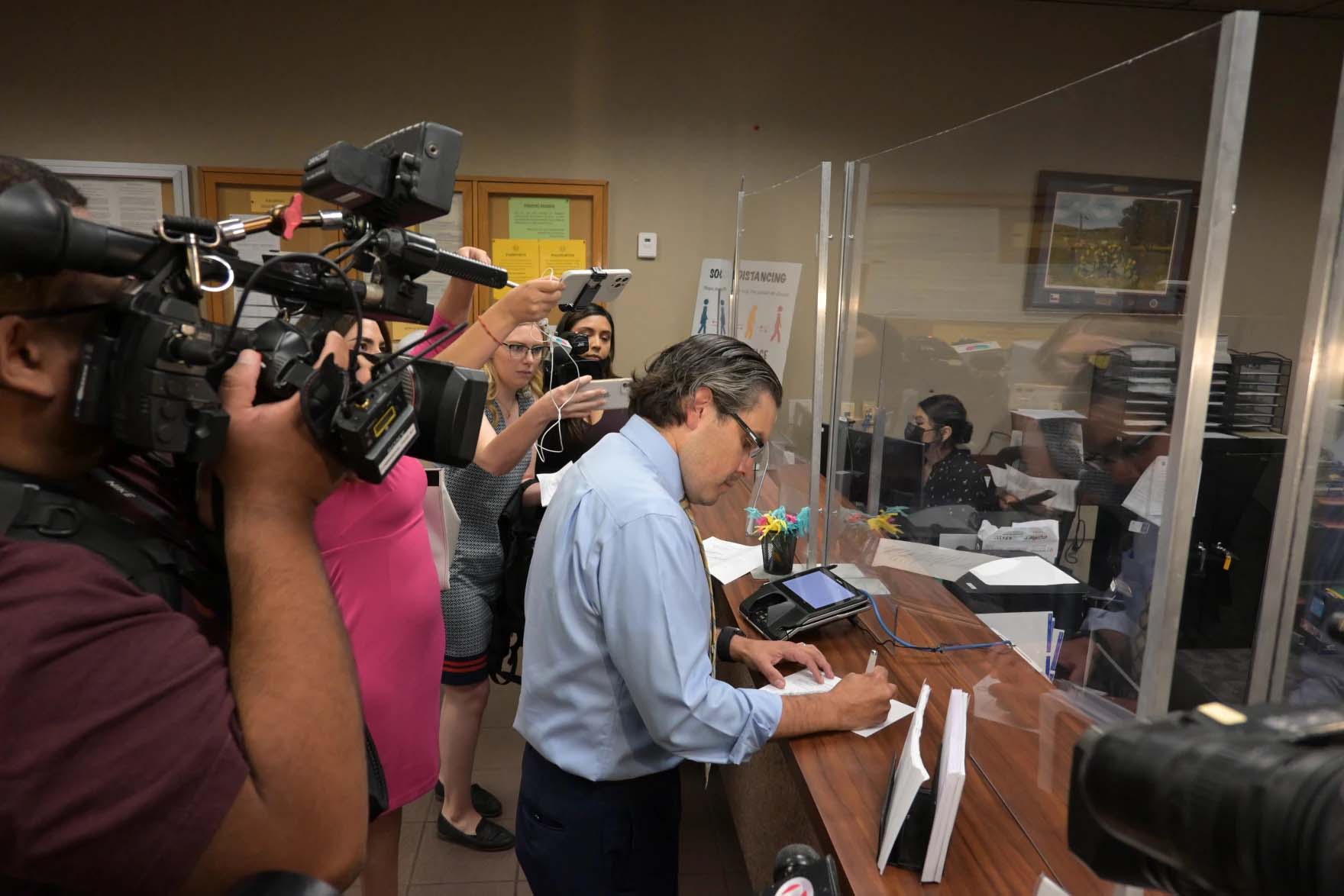 Attorney Omar Carmona signs petition to remove El Paso County District Attorney Yvonne Rosales from office on Aug. 24, 2022.
