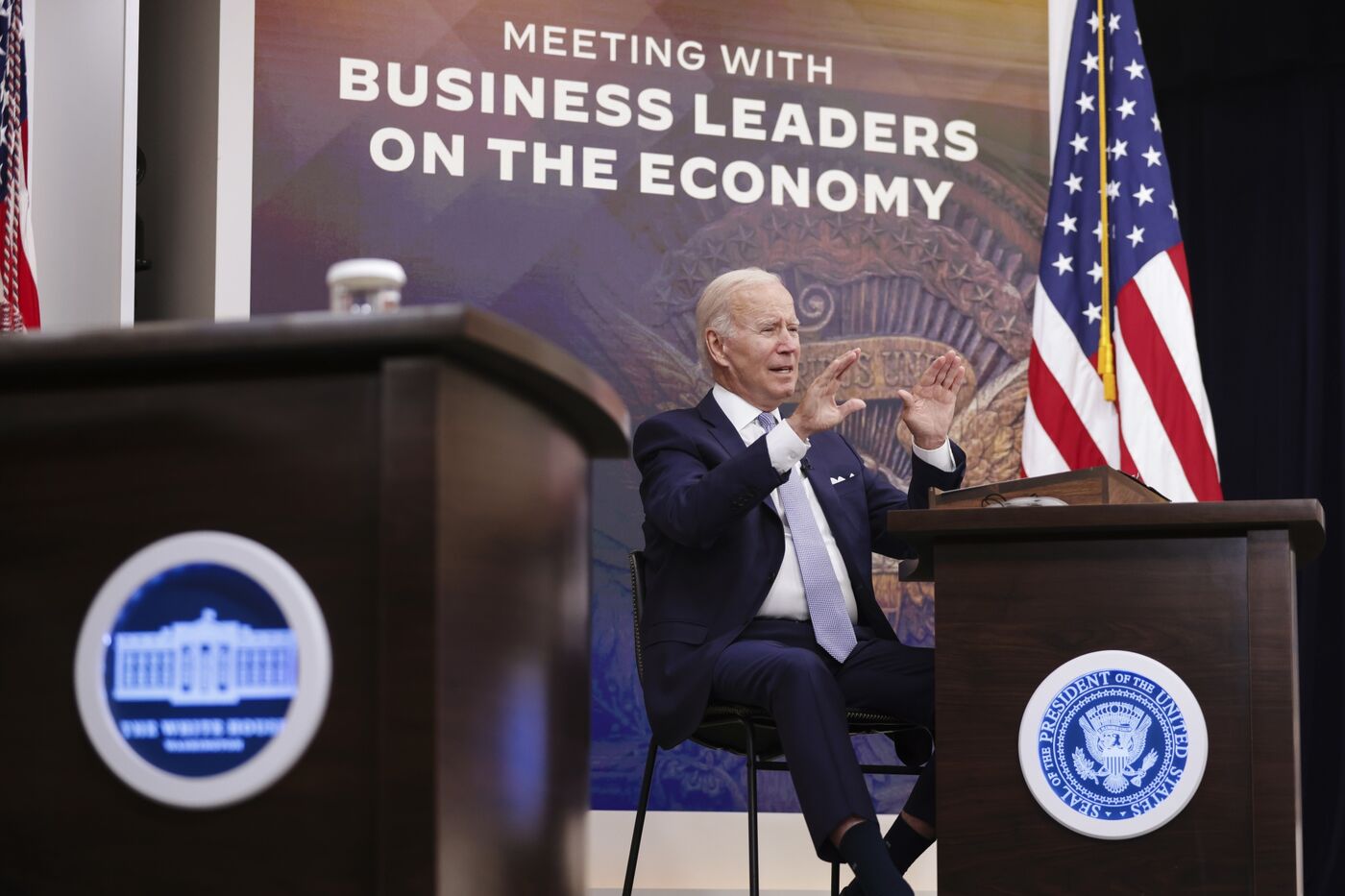 US President Joe Biden speaks at a meeting with business leaders on Thursday, July 28, just as the drumbeat of recession grew louder. Photographer: Oliver Contreras/Bloomberg