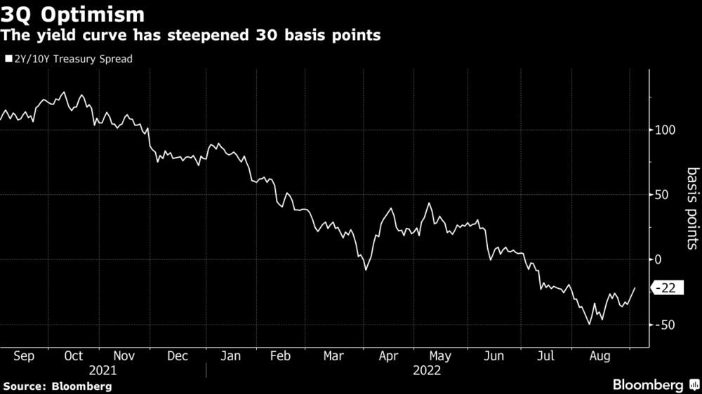 In the past few weeks, as the market started to figure out that the third quarter would be pretty good, long-term Treasuries sold off the most and the curve steepened nearly 30 basis points.