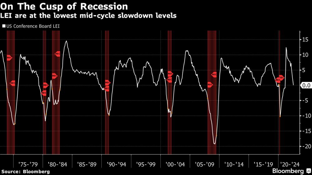 The base case still has to be a situation in which the US economy falls into recession. In terms of the leading economic indicators, we’re right at the level separating mid-cycle slowdowns from recessions. And with the slope of the line aggressively negative, it would take a remarkable turnaround to stop here. So the decline in shares is not all about rates. It’s due to a fundamental downtrend in growth that has been lessened this quarter, but only temporarily.
