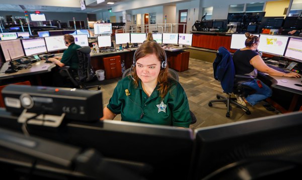 When a caller dials 911, someone in this room picks up. Then that person alerts Swetson, who relays information to deputies on the road.
