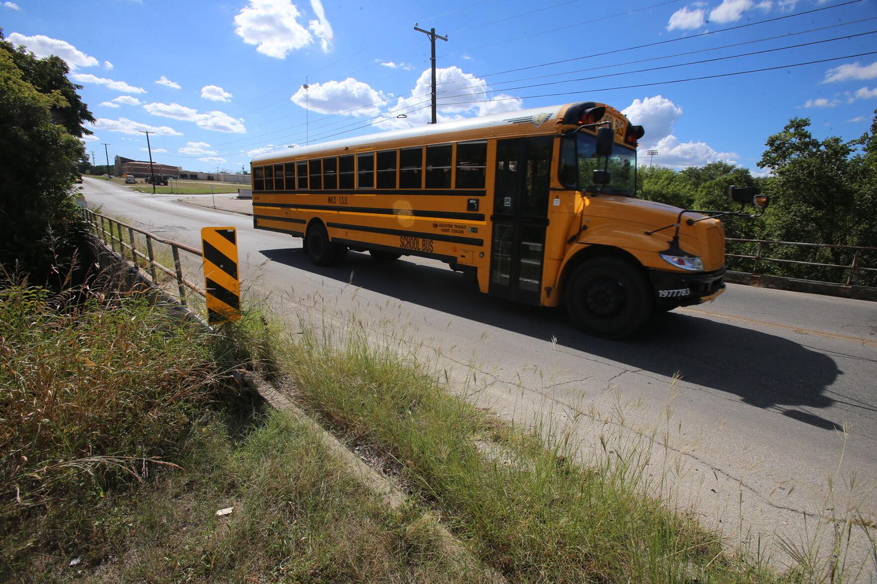 A school bus crosses Waco Creek on Clay Avenue near the former site of Floyd Casey Stadium. Jerry Larson, Tribune-Herald
