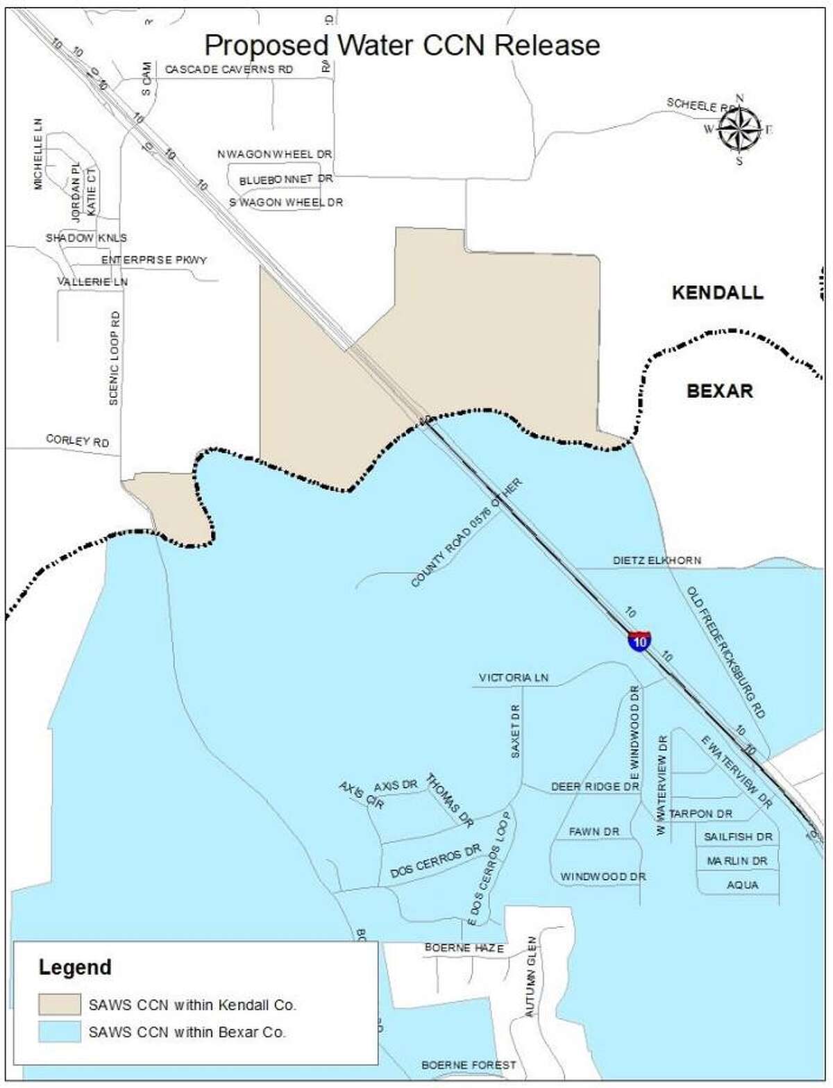 SAWS’ board on Tuesday approved the transfer to a private company of its water and sewer certificates of convenience and necessity — or CCNs, which delineate the areas where SAWS is required to provide such services when requested — in Kendall County. The move comes after months of discussion about the city-owned utility’s service obligations beyond Bexar County.