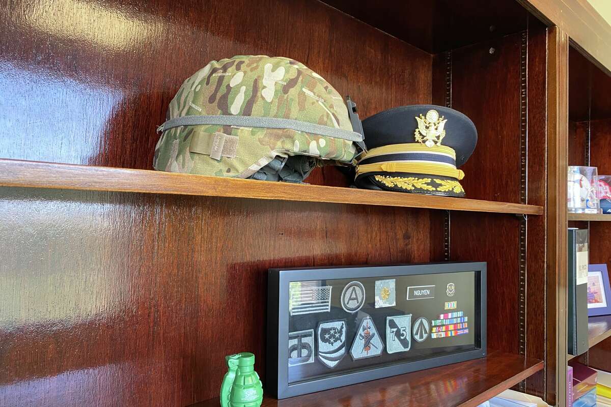Doanh Zone Nguyen's office showcases numerous awards, recognitions and items from his military service and professional career.