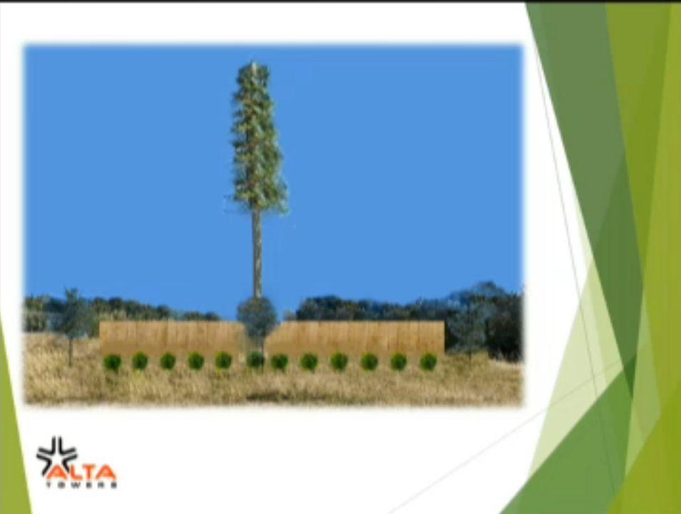 The compound will be surrounded by greenery “in order to meet the requirements of zoning,” Gatz said. “Also included are eight trees ... to go ahead and surround the area as well. In this particular instance ... it’s a monopine that’s going to be erected.”