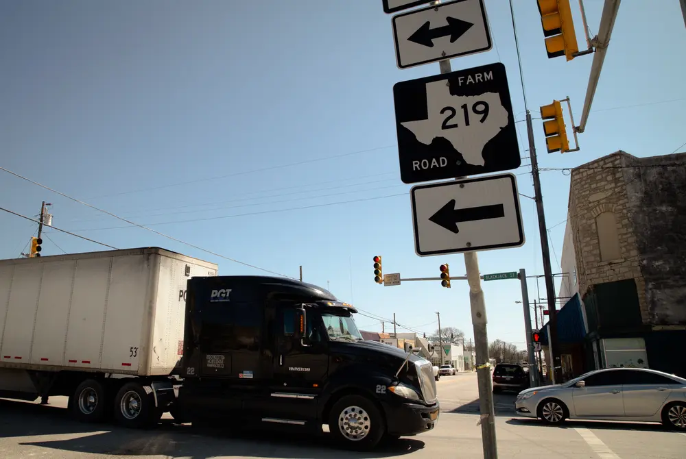 Vehicles pass through Dublin in Central Texas on March 25, 2021.