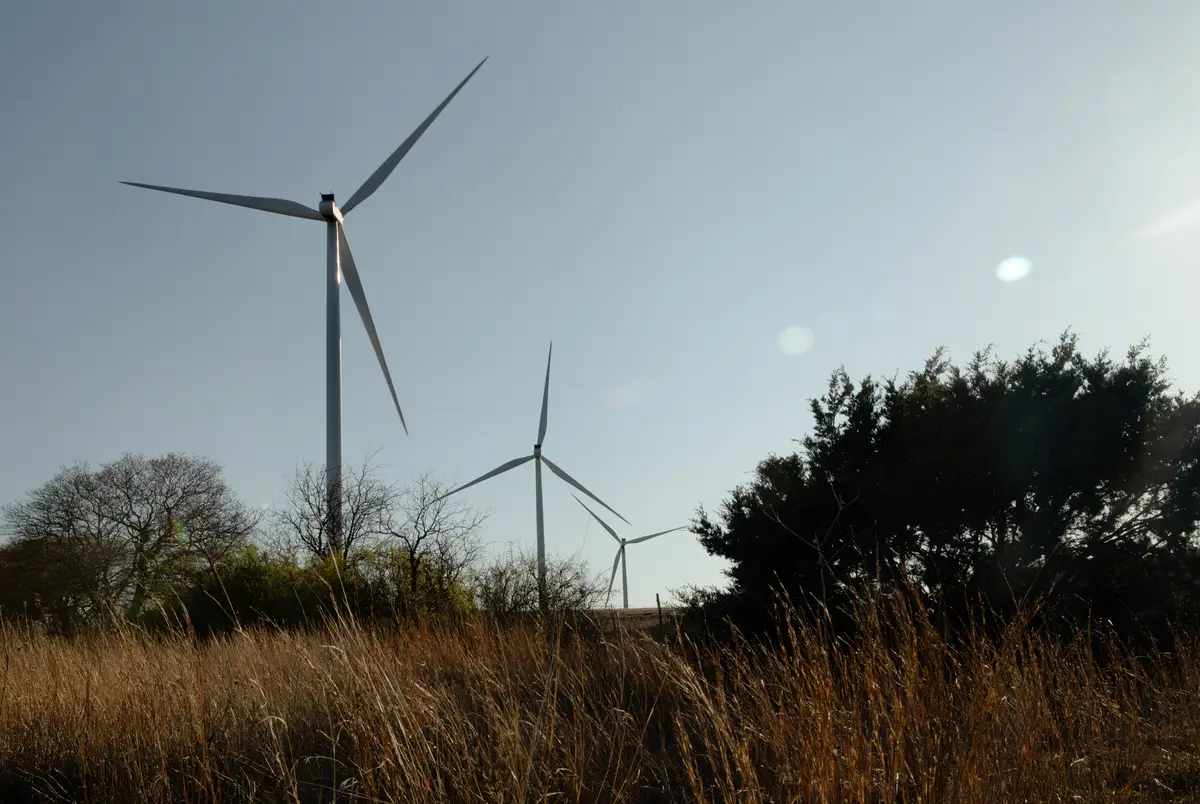 Wind turbines spin in Central Texas on March 25, 2021.