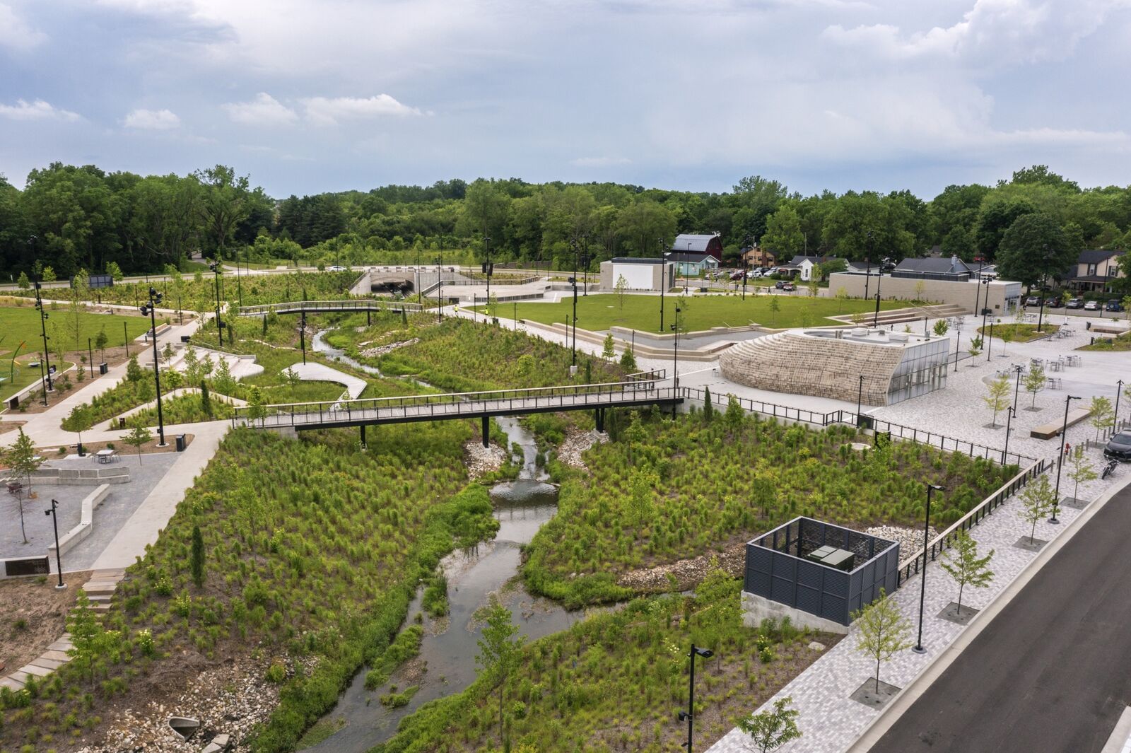 Westfield’s six-acre Grand Junction Plaza restores a stretch of Grassy Branch Creek.