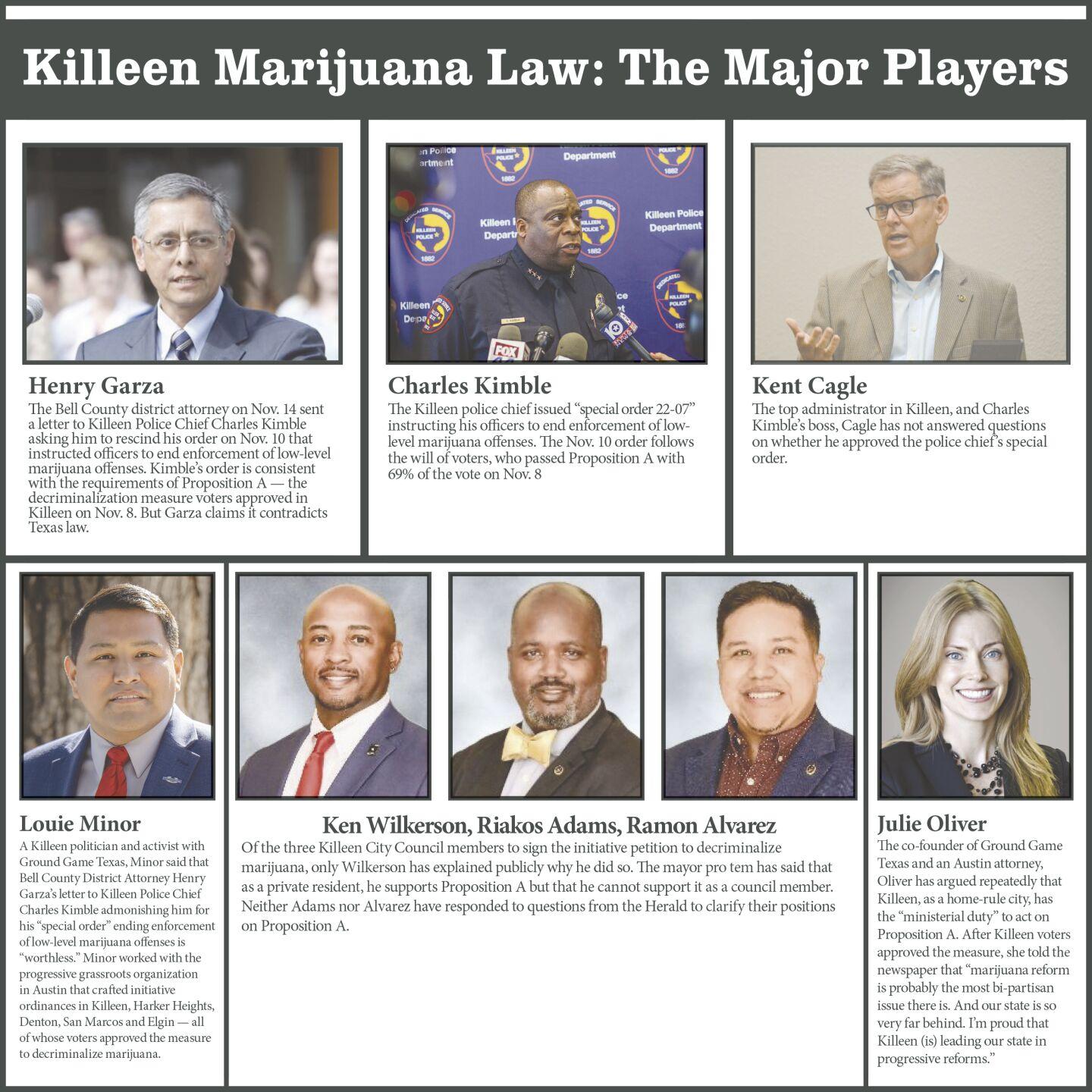 But since the Nov. 8 election in which voters in Denton, San Marcos and Elgin also approved similar propositions, Bell County District Attorney Henry Garza has asked Killeen Police Chief Charles Kimble to rescind his “special order 22-07” to officers. Kimble’s order essentially put the new ordinance in effect on Nov. 10, two days after the election and before the Killeen City Council canvases the votes to certify the election, which the council is scheduled to do at a meeting Tuesday.