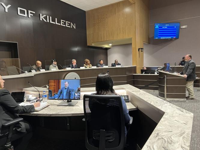 Bell County Precinct 4 Commissioner Bobby Whitson addresses Killeen City Council members on Tuesday before they voted to place a moratorium on Proposition A until Dec. 6