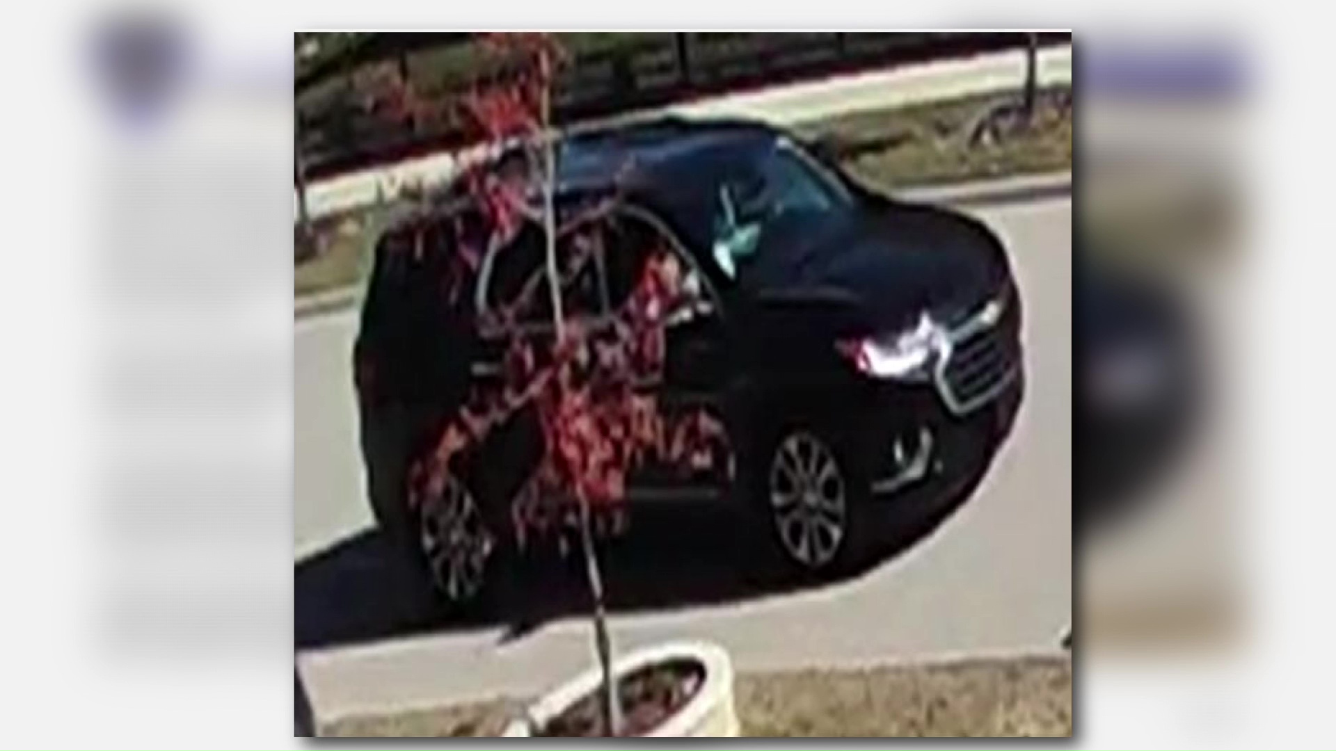 Police released an image of the suspects' dark-colored SUV, possibly a Chevrolet Traverse, following the two thefts reported last week.