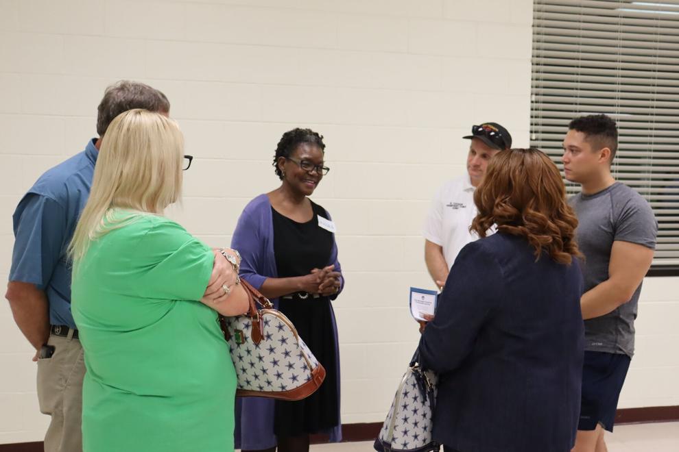 Baytown city manager candidate Caluha Barnes, center, speaks to citizens about why she is the right person to take the city manager position at a Meet and Greet event at the Baytown Community Center Monday night. Barnes was one of four candidates that answered questions about why they should be outgoing City Manager Rick Davis’ successor. Davis is leaving the position at the end of the year. Other candidates besides Barnes were current Assistant City Manager Jason Reynolds, Lawton,