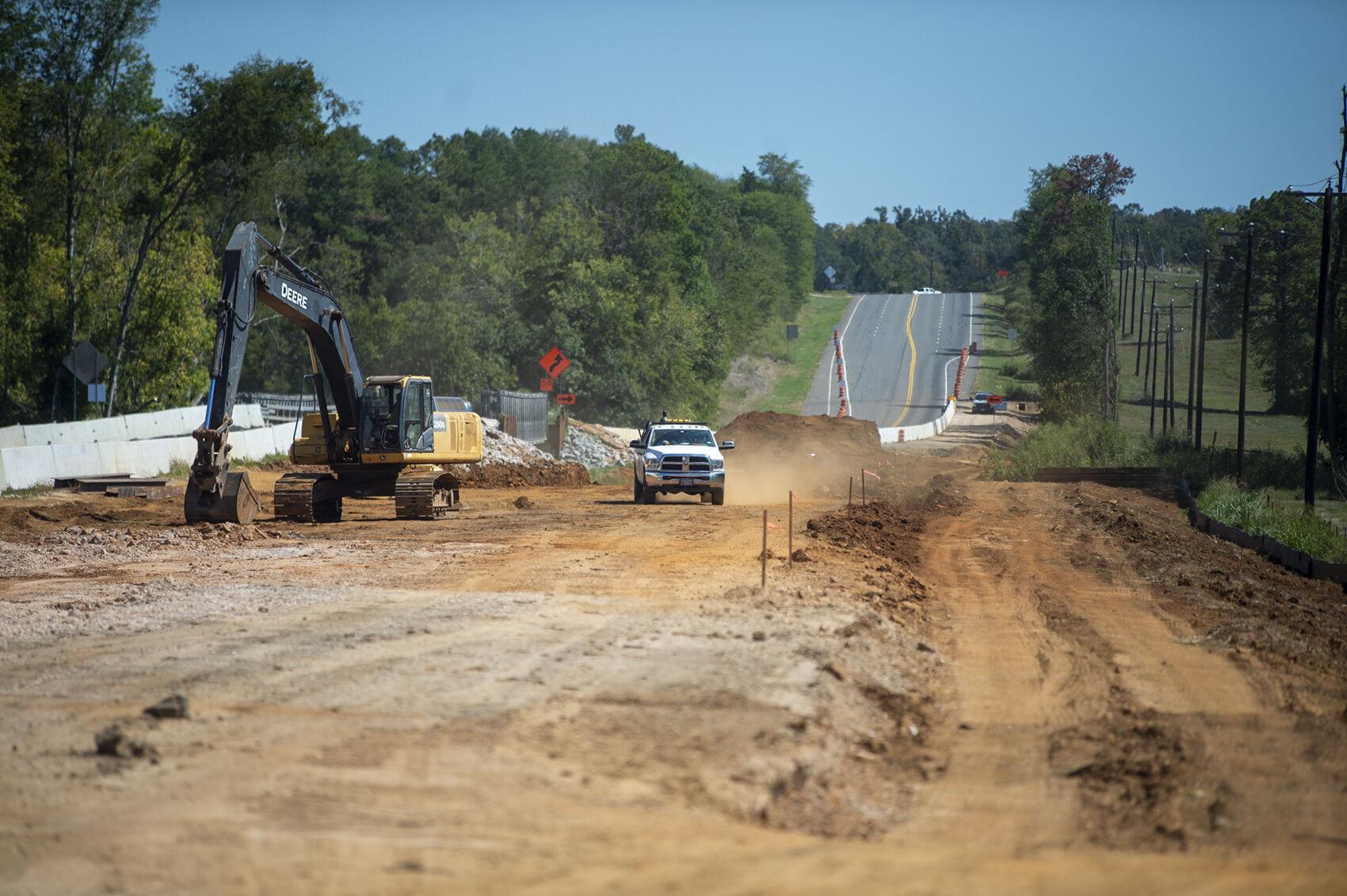 Work continues Thursday on a temporary bridge over Atascoso Creek on Hwy. 21 about 8 miles east of Nacogdoches.