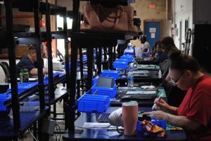 Workers put together ribbons for orders at the USAMM warehouse in Killeen. The company is expanding at Killeen Business Park