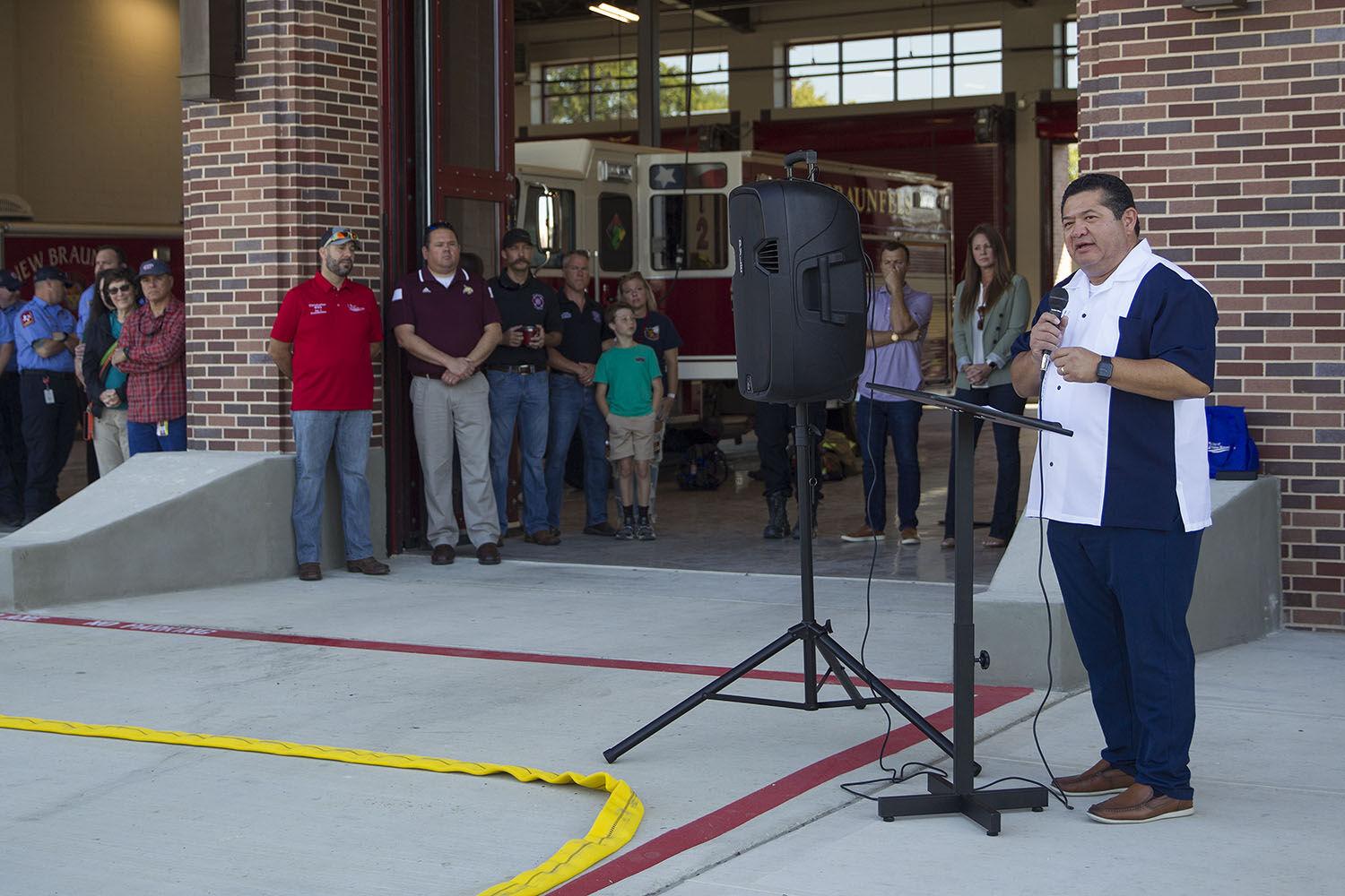 City Manager Robert Camareno speaks to community members during an uncoupling cermony at Fire Station No. 2, Friday, Sept. 30, 2022 in New Braunfels.