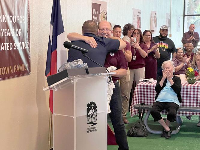 Photo by Jason Calder, City of Baytown Baytown Sun Sep 30, 2022 After 14 years of dedicated service to the City of Baytown, Assistant City Manager Kevin Troller was given a retirement party by staff members of the city. Troller was presented with a handmade table that identifies his school of choice. He was also given a specially-made street sign bearing his name. Dr. Lynda Villanueva, Lee College president, and former Baytown Mayor Stephen DonCarlos were in attendance along with many of Troller’s family and city employees.