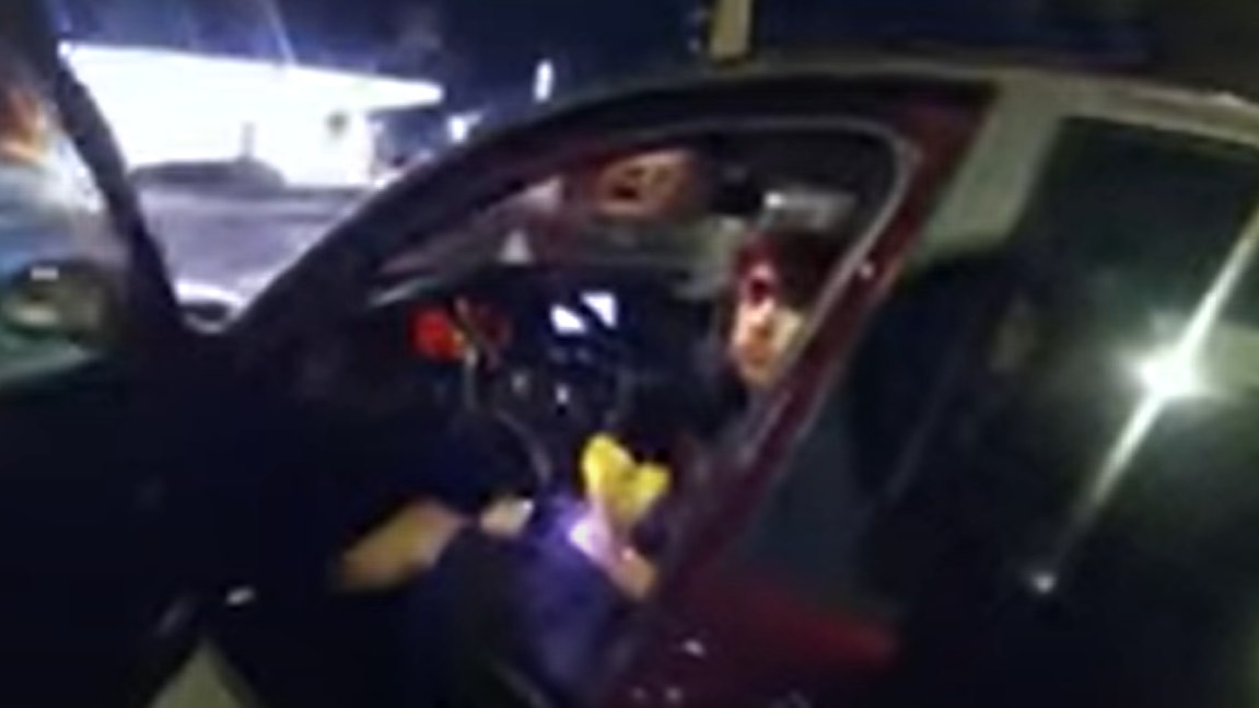 In the footage, the officer approaches the car and opens the teen’s front door. He then asked the teen to remove himself from the vehicle, to which the young man places his hands on the steering wheel and responds, “Why?”