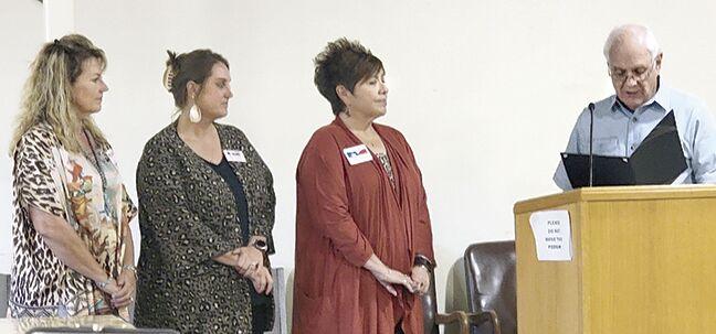 Mayor Robert Moore, right, reads a proclamation proclaiming Oct. 17-21 “Chamber of Commerce Week” in Big Spring. Moore presented an official copy of the proclamation to (from left) Big Spring Area Chamber of Commerce President Michelle Hamlin, former president Kayla Jo Nichols, and Director Debbye Valverde