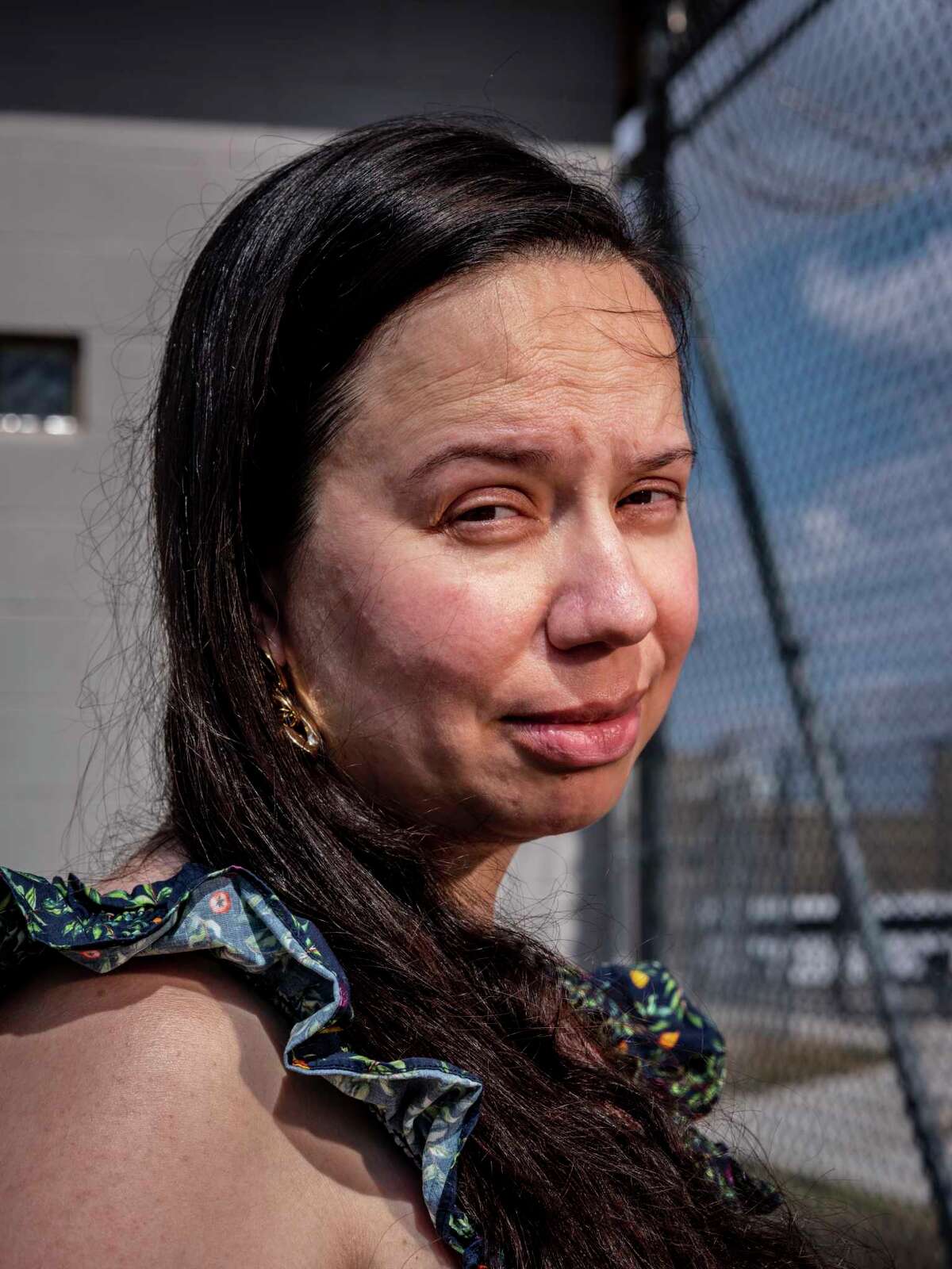 Amy Kamp, who has been advocating for inmates at the Hays County Jail who remain incarcerated for extended periods of time without having been convicted of a crime, poses for a portrait outside the jail Friday, Oct. 14, 2022, in San Marcos.