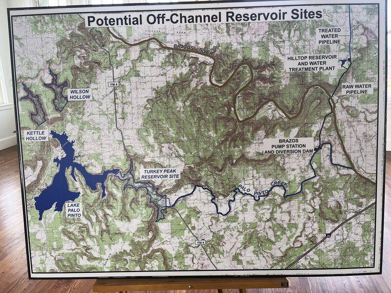 The water infrastructure, with Turkey Peak Reservoir at the center of Palo Pinto County, is described in this topographic map planners looked over at the two-county discussion that centered on forming a regional alliance.