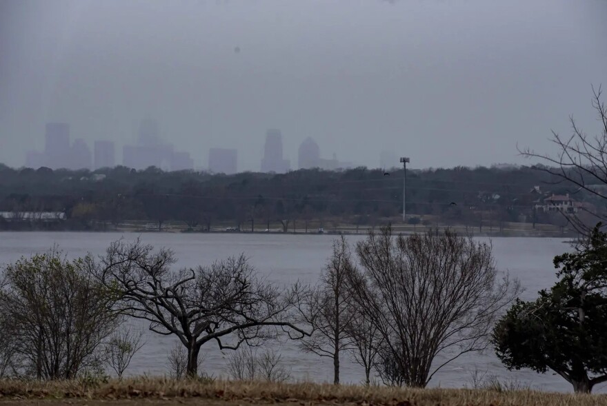 The Dallas skyline is barely visible from Winfrey Point in Dallas on Dec. 22, 2022. Temperatures dropped from 45 degrees at 9 a.m. to 25 degrees shortly before noon.