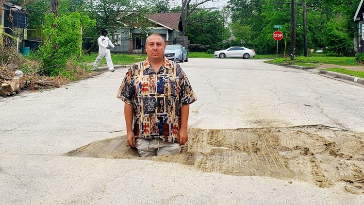 HOUSTON — How big was the hole in the middle of a Houston road? One man showed how big by standing in it.