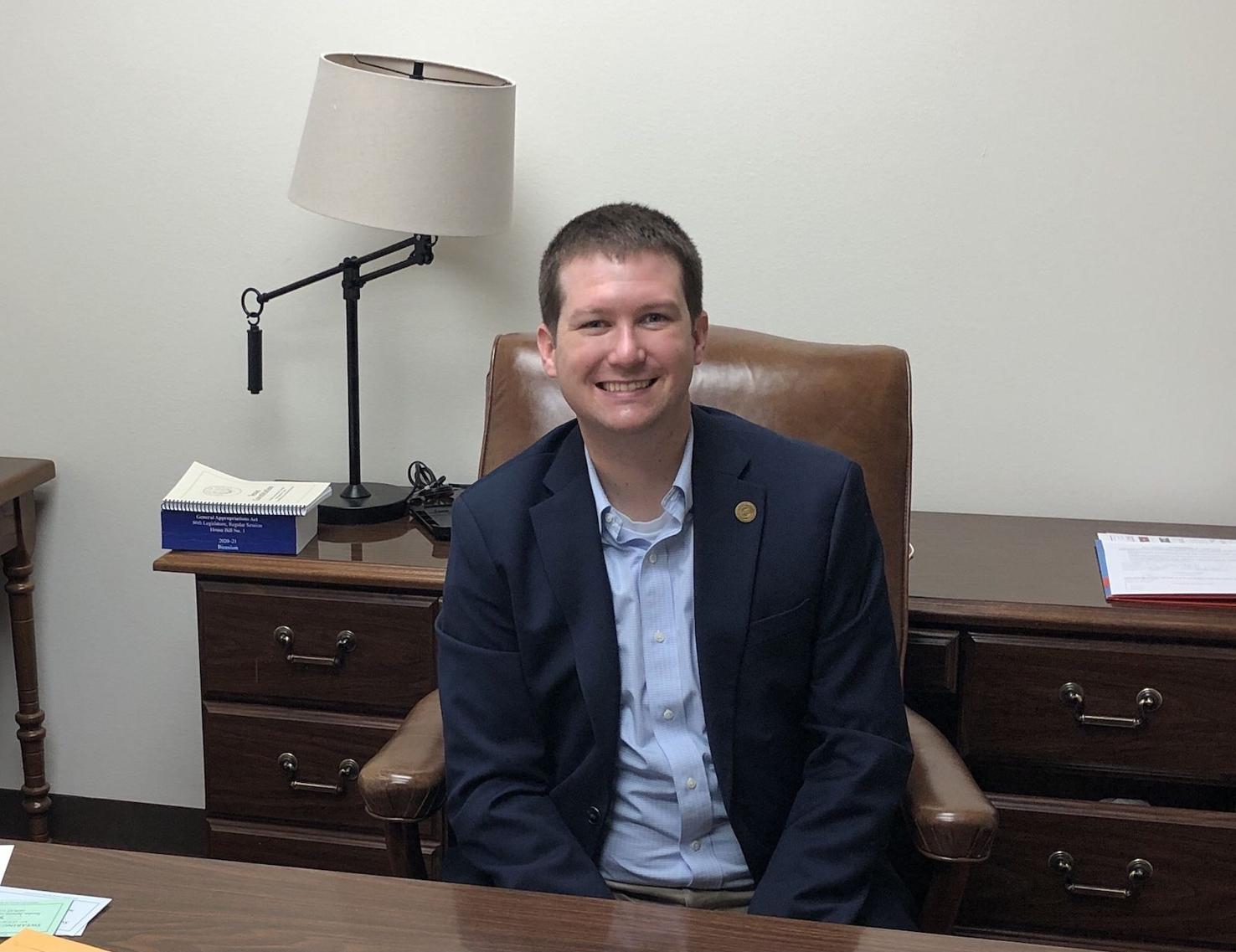 State Rep. Cody Vasut, R-Angleton, sits in his new office Jan. 11 in the State Capitol in Austin. The first-term legislator learned his committee assignments last week, and they take advantage of his legal experience.Contributed photo