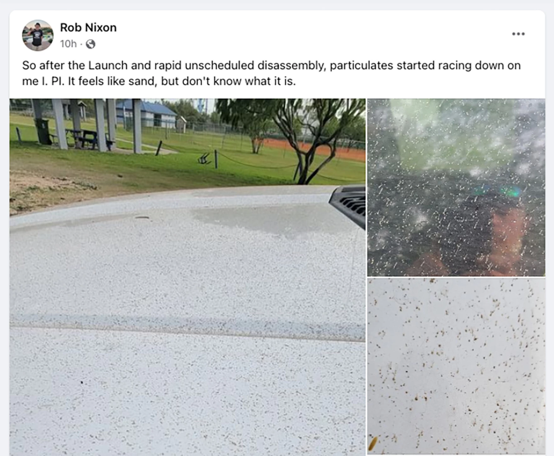 Residents wondered on social media if the dust-like substance came from the liftoff, the explosion, or somewhere else.