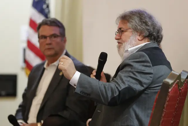 Former chair of the Texas Water Development Board Carlos Rubinstein speaks at a panel discussion as state Sen. Charles Perry, R-Lubbock, looks on, at the McKenzie-Merket Alumni Center at Texas Tech University on Nov. 18, 2022.