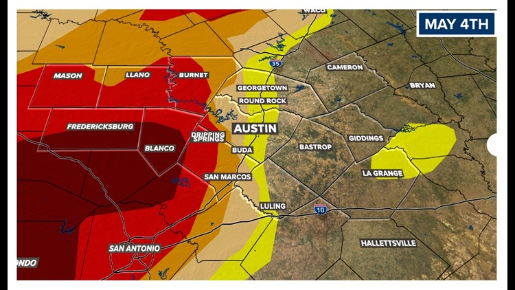 AUSTIN, Texas — The month of April brought much needed rain and drought relief to Central Texas. Austin recorded 4.18" of rain, which is 1.76" over the monthly average. We are now moving into May, which is historically the wettest month of the year with over 5" of rain on average.
