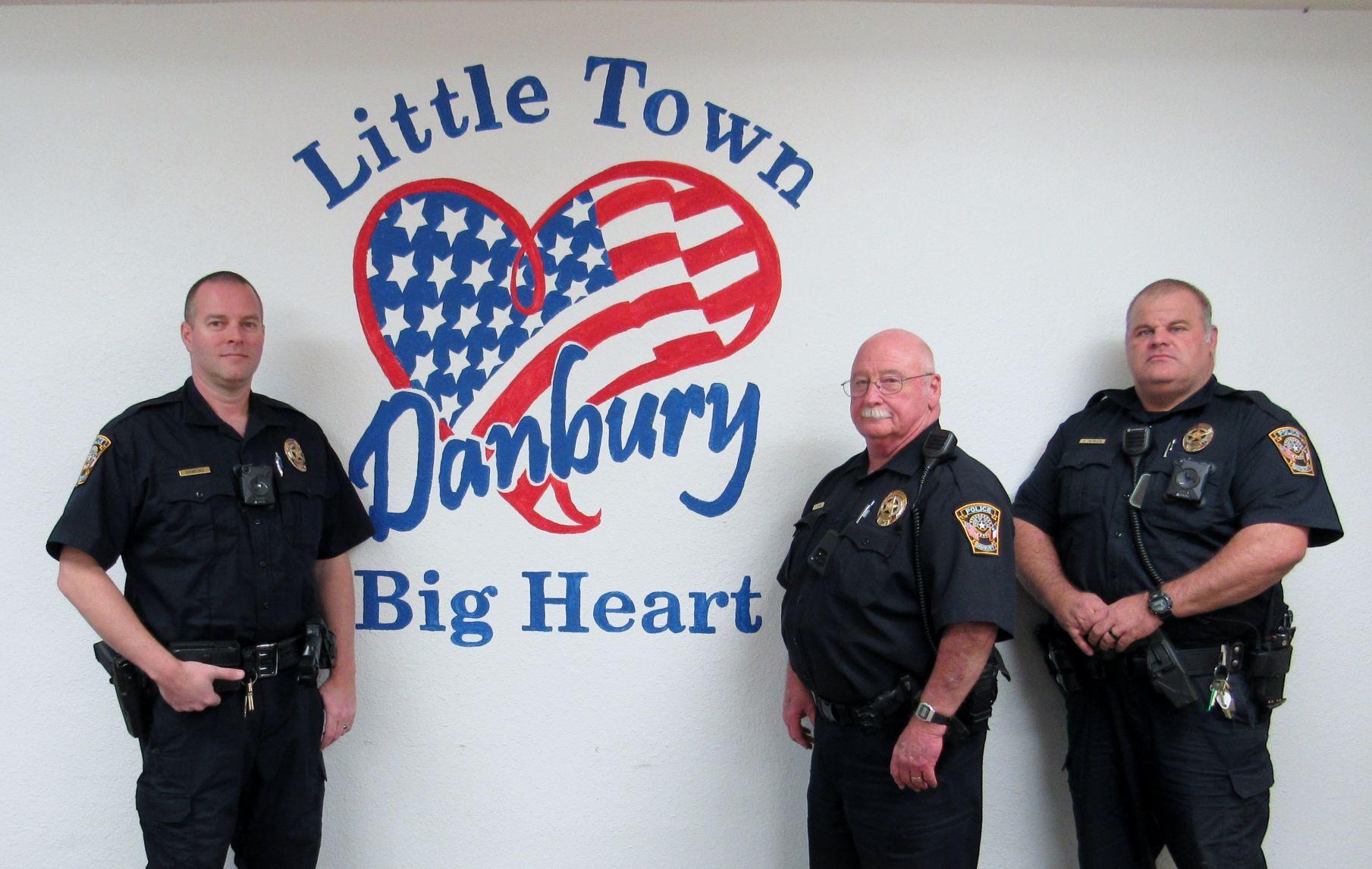 Officer David Hawkins, Police Chief Randy Rhyne and Officer Christopher Henken, newly promoted to full-time, make up the Danbury Police Department.