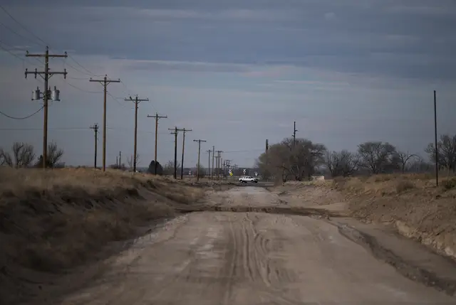A truck passes a county road in Bailey County. Credit: