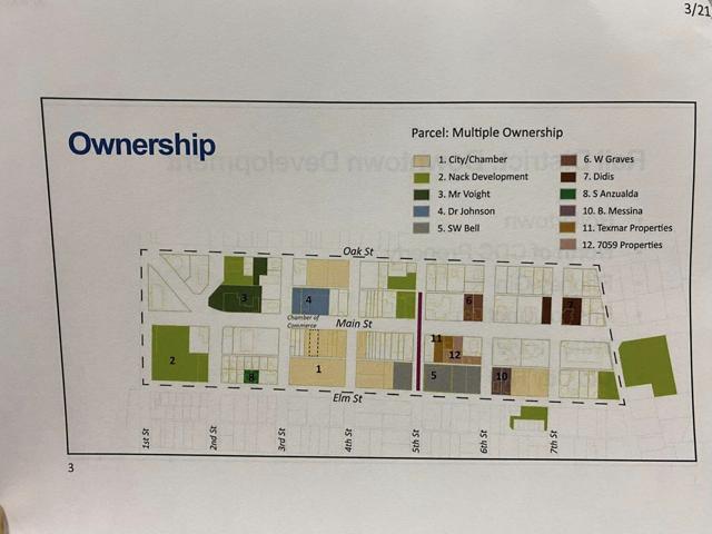 During the discussion, Lettelleir presented a map depicting property owners in the downtown area, including the multiple sites owned by the city.