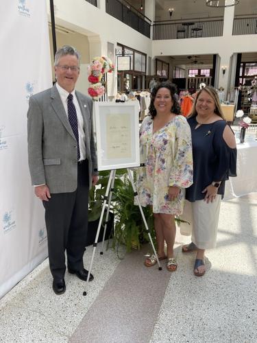 Texas Rep. Glenn Rogers, R-Graford, Mineral Wells Mayor Regan Johnson and Rose Jordan, director of marketing and tourism for the Mineral Wells Area Chamber of Commerce, smile next to Rogers’ bill that Gov. Greg Abbott and legislative leaders signed designating the city The Wellness Capital of Texas.