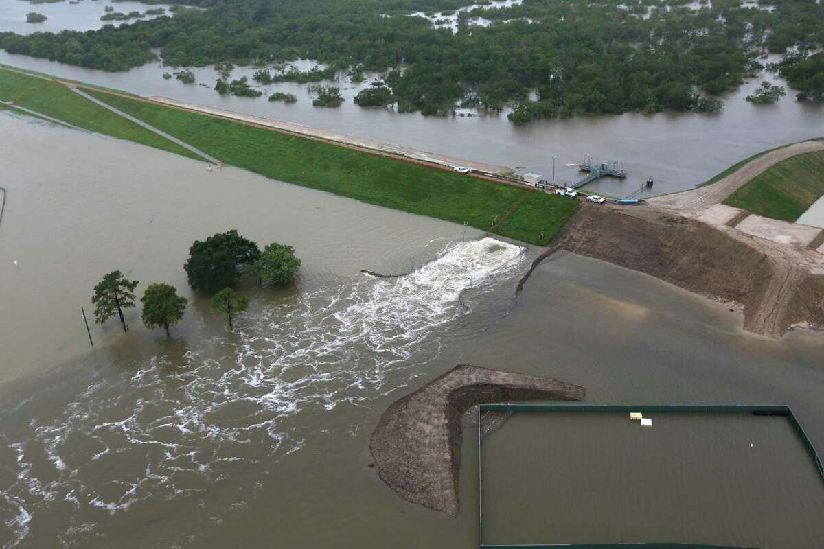 Water is released from Barker Reservoir as floodwaters from Tropical Storm Harvey continue to rise on Tuesday, Aug. 29, 2017, in Houston.