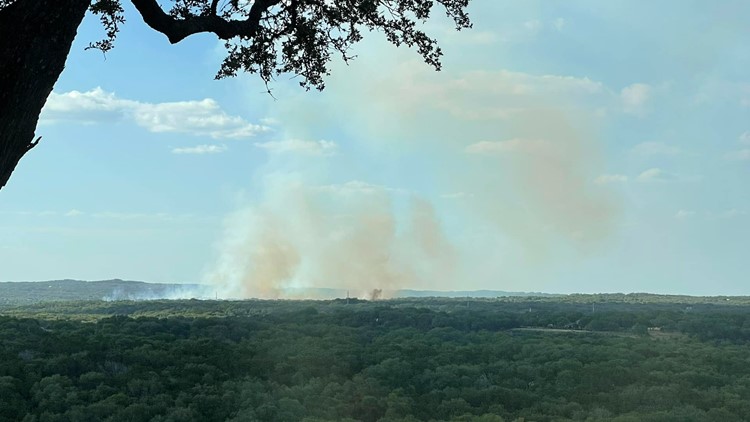 SAN MARCOS, Texas — Hays County crews are working to put out a brush fire north of San Marcos on Saturday evening.