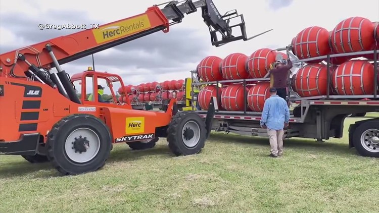 The "floating barrier" operation is part of the state's plan to deter migrants from crossing the river after Maverick County saw an increase in illegal crossings. The first 1,000 feet of buoys are being placed near Eagle Pass but can be moved as needed.