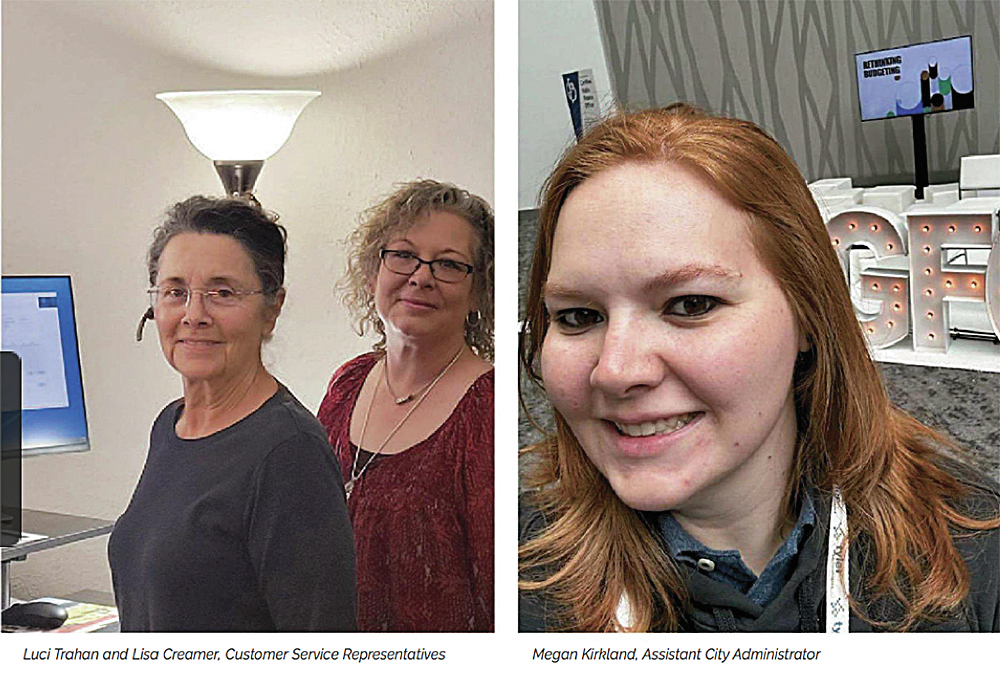 Appearing in the TML magazine article are, at left, customer service representatives Luci Trahan and Lisa Creamer. Pictured at right, Megan Kirkland is assistant city administrator.