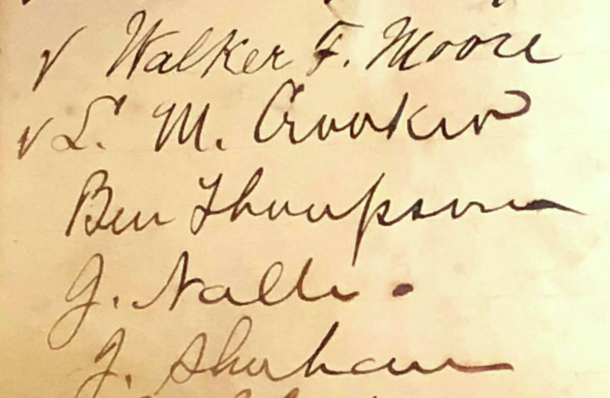 The signature of Ben Thompson, a lawman and one of the most feared gunfighters in Texas, appears in an 1881 registry of the Menger House -- today's Menger Hotel. Thompson was allowed to sleep at the Menger the night after fatally shooting Jack Harris, owner of the Vaudeville Theater in Main Plaza in 1882. The historic registry was on display in the hotel lobby during the Wild West History Association's annual convention at the Menger.