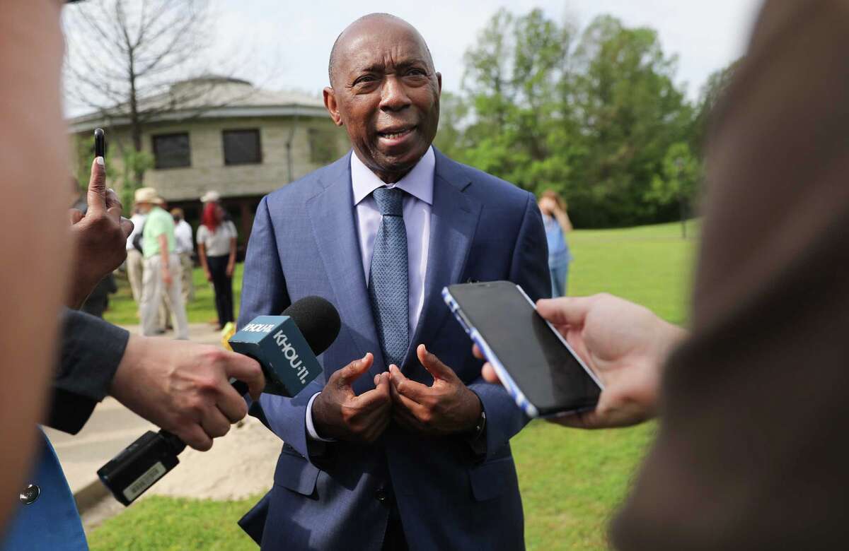 Houston Mayor Sylvester Turner talks to the media in March. City Council on Wednesday approved the last budget of his eight-year tenure.