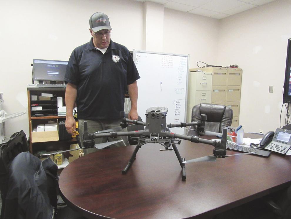 Delaware County Emergency Services Director Steve Hood stands behind one of the county’s two drones Wednesday, June 7 at the Emergency Services office in Delhi.