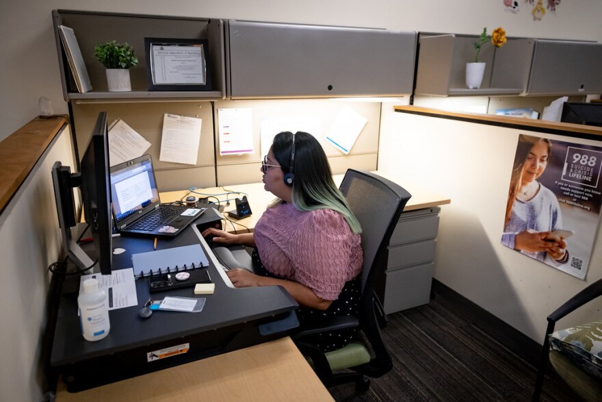 Karen Duran, a mental health provider supervisor, handles calls to Integral Care's crisis hotline at the agency's Dove Springs clinic.