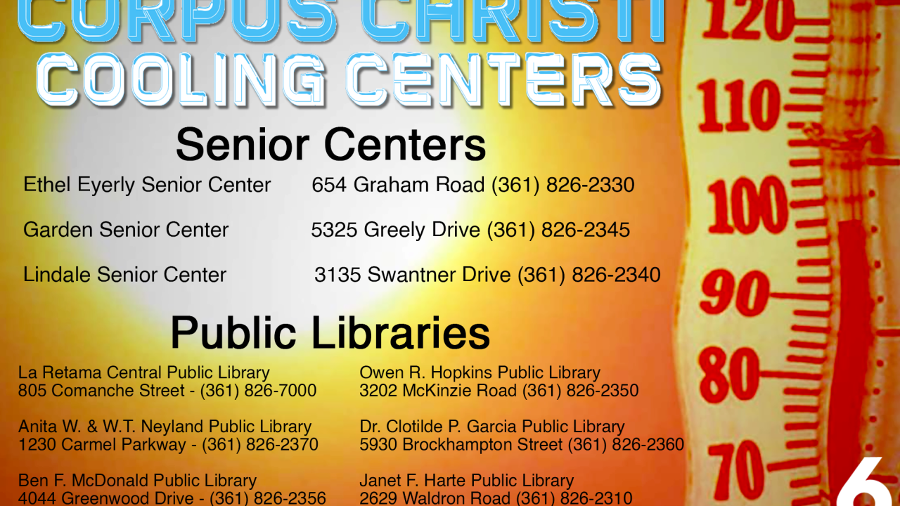 CORPUS CHRISTI, Texas — The city of Corpus Christi has announced they will continue to keep cooling centers open for residents looking to stay out of scorching heat.