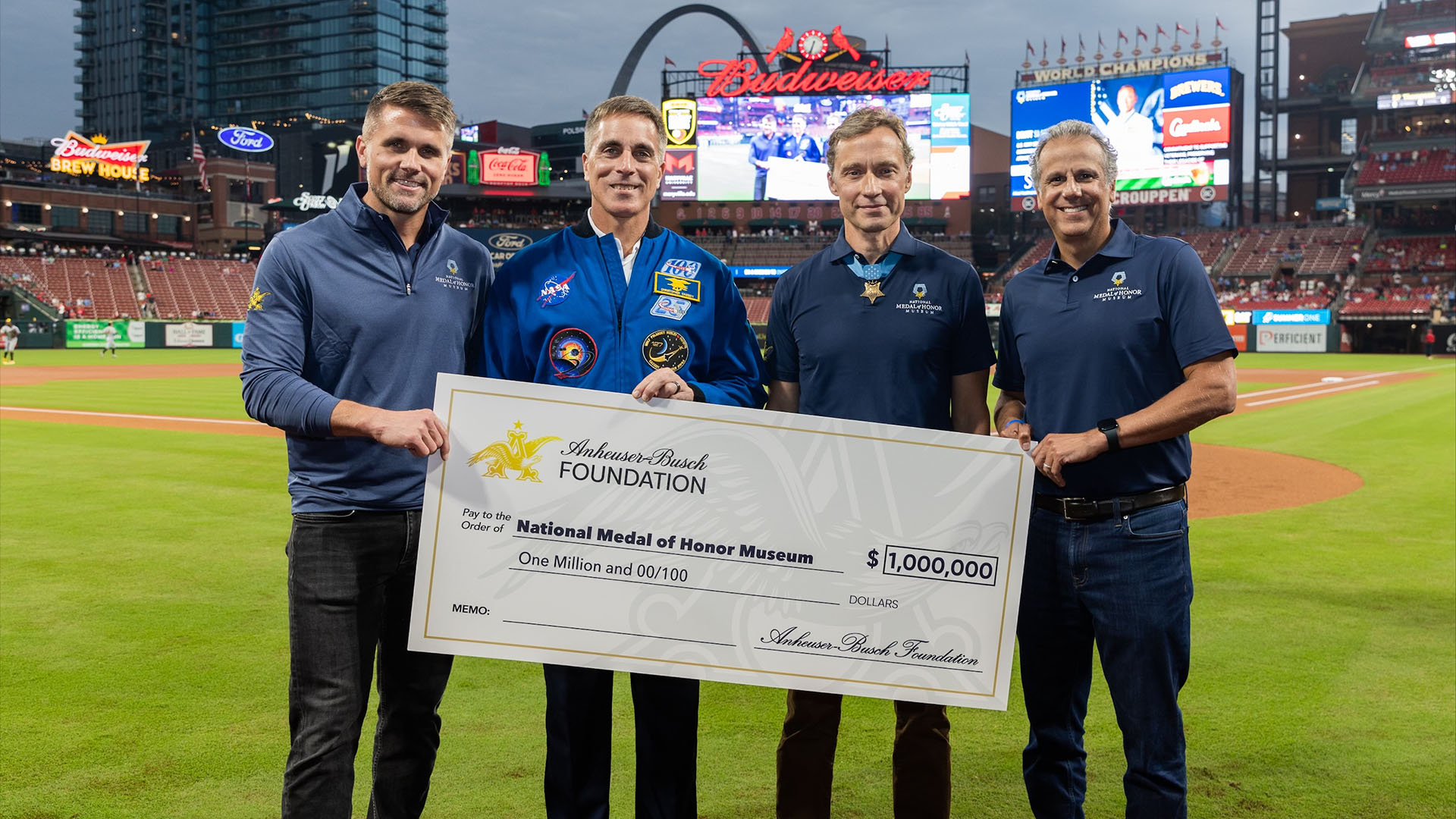 Last week Anheuser-Busch made a $1 million philanthropic donation to support the ongoing construction of the museum. The gift was presented Sept. 20 at Busch Stadium in St. Louis during an on-field ceremony at a Cardinals-Brewers game with Cassidy and Medal of Honor recipient Britt Slabinski, a retired Master Chief Special Warfare Operator (SEAL).